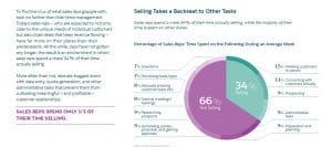 The surveys I find most beneficial are those that examine the business processes and users that a particular solution helps automate. These are not surveys about the features and functions of a specific application, instead they focus on the environment and people. Good surveys have over 1,000 respondents from a variety of organizations and geographies. Most surveys capture demographic information about the respondents – location, company size, company vertical, title, reporting relationships, years of experience, and in some cases even compensation information. They also typically cover “a day in the life of” the survey respondents. For example, here is a breakdown of how sales reps spend their time in an average week according to the State of Sales report (p9):