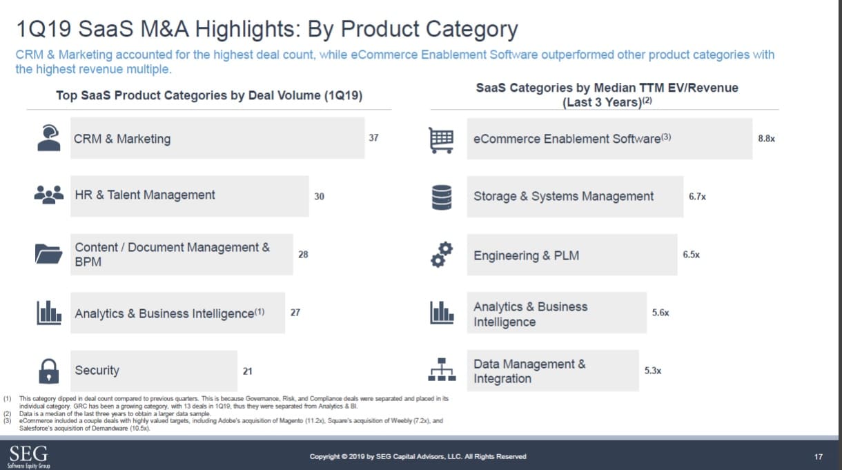 The Software Equity Group has published its Q1 snapshot of SaaS M&A transactions. SEG consistently publishes free, high quality, quantitative research on technology mergers and acquisitions. Click here to access the entire report. Some key insights noted in the report include: