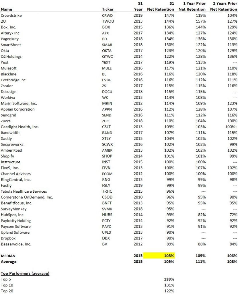 Here is a list of public companies and what their retention rates are like: