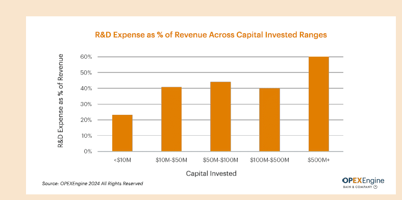 Benchmarking your R&D organization against industry standards and peers provides insights into relative strengths and areas for improvement. The true value of benchmarking lies in its careful, contextual analysis, making like-for-like comparisons to reflect the company’s stage of growth, customer profile, and business model.
