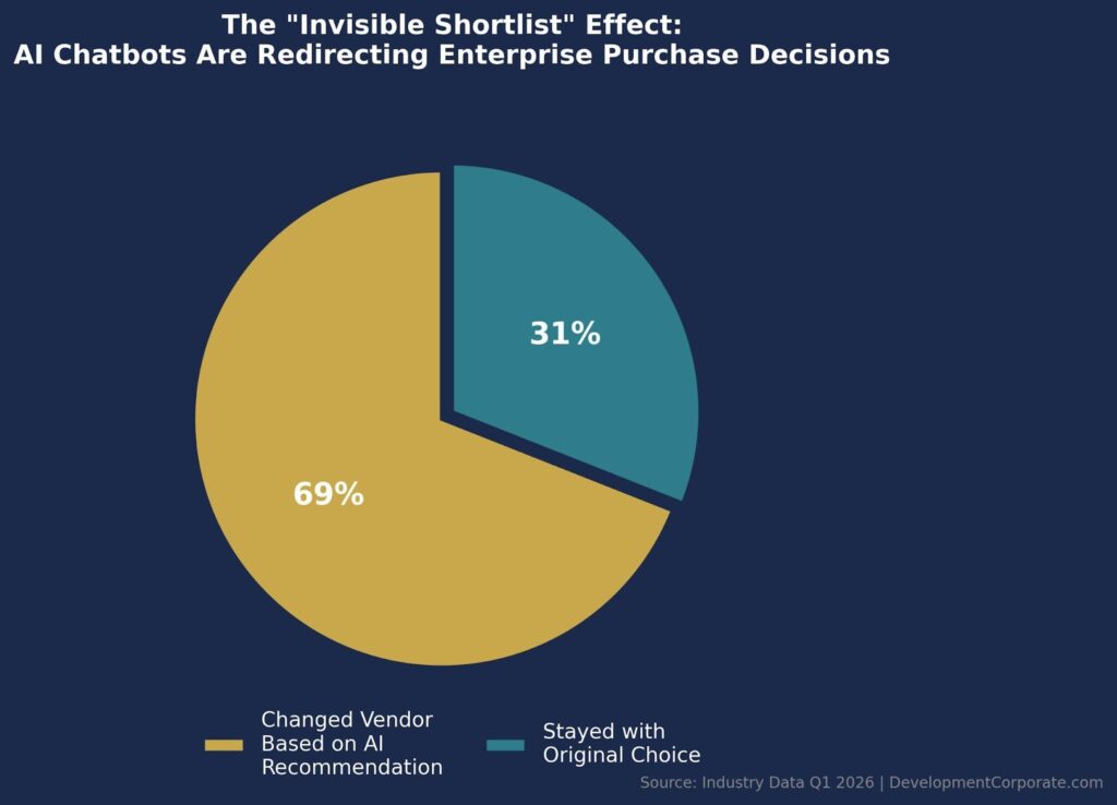 69% of enterprise buyers recently chose a different vendor than originally planned because of an AI chatbot recommendation. This is not channel substitution. This is category-level purchase intent rewriting.