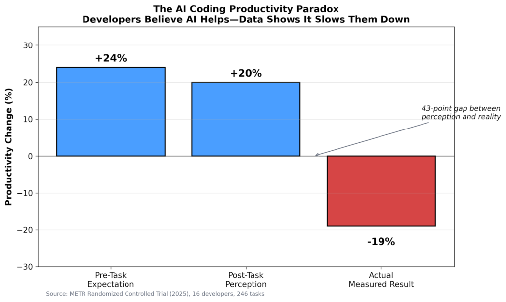 Figure 2: The AI Coding Productivity Paradox—Perception vs. Reality